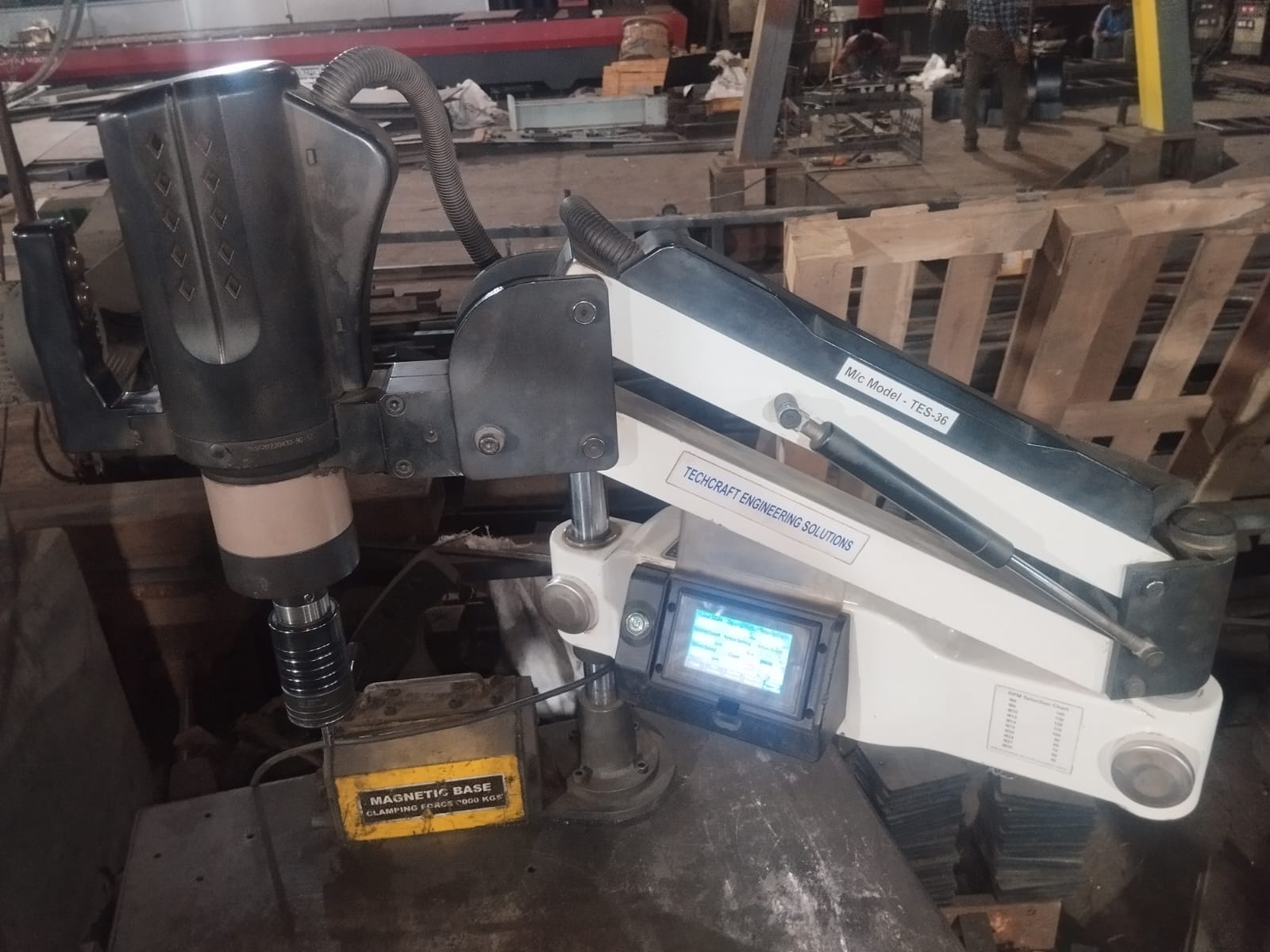 A tapping machine is a special tool used in factories to make threads inside holes, so that screws or bolts can fit in properly. It is mostly used in metalworking and manufacturing industries to make work faster and more accurate. Instead of making threads by hand, the tapping machine does it quickly and neatly, saving both time and effort. It comes in different types, like manual, semi-automatic, and fully automatic, depending on the kind of work needed. Some tapping machines can even be connected to drilling machines for more convenience. They are strong, easy to use, and help improve the quality of the finished product. This machine is very useful for making parts in large numbers, especially in industries like automotive, machinery, and construction.